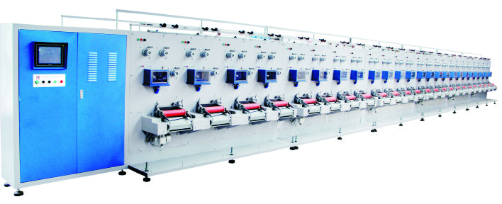 本機是采用壓縮空氣對各種長絲進行變形加工。使其產(chǎn)品具有仿毛、仿棉、仿麻或仿絲的外觀和手感,廣泛應(yīng)用于服裝、家庭裝飾、汽車座席、傘、包、地毯、墻布等紡織行業(yè)或工業(yè)膨化、浸膠產(chǎn)品中。 主要配置 1、單面直立式,紗架與主機面對面; 2、芯絲輥、皮絲輥,輸出卷繞均為同步電機單獨直帶,整機同一功能輥由一臺大功率變頻器驅(qū)動; 3、槽筒移紗,摩擦輥驅(qū)動完成卷繞,卷繞尺寸Φ250*250mm,管長290mm。 4、可單錠開停; 5、有斷絲自停,定直徑停車(單錠)功能; 6. 人機界面、PLC完成工藝、參數(shù)的設(shè)定、修改、顯示、儲存。