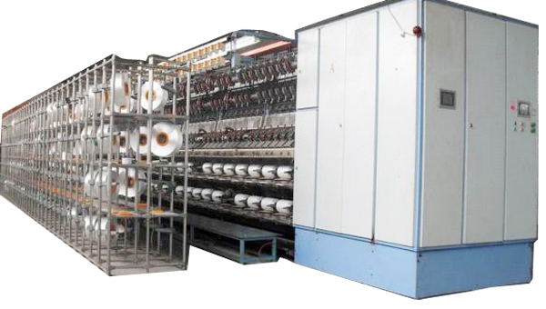 主要配置 1.主機由車頭部件、機架部件、第一喂入羅拉W1、第二喂入羅拉W2、輸出羅拉W3、卷繞羅拉W4、橫動防疊部件W5、切絲和探絲部件、變形箱部件、上油裝置、供氣、水部件、電氣部件、絲架部件等組成。 2、全機兩側(cè)的W1、W2、W3、W4、W5為分別驅(qū)動,可設(shè)置不同工藝,同時紡不同品種。 3、全機每錠配2套探絲器,2套切絲器; 4、可選配竹節(jié)裝置; 5、絲架每錠4個絲位; 6、人機界面、PLC完成工藝參數(shù)的設(shè)置、修改、顯示、儲存,整機調(diào)速均由變頻器控制同步電機完成。